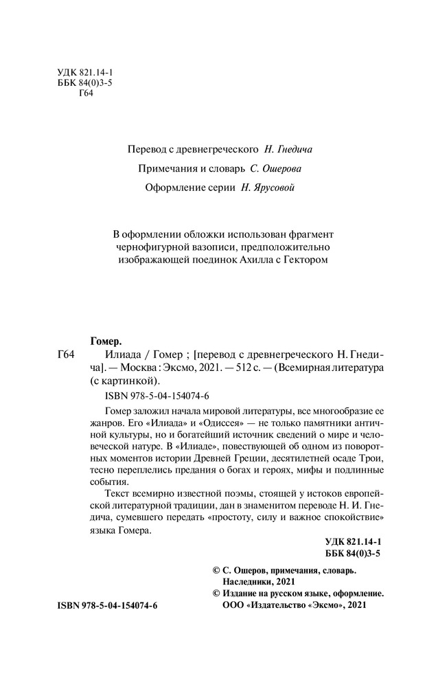 💳 Оплатить за товар можно при получении 🇰🇿 Есть бесплатная доставка по Казахстану от 1 дня 🎁 Копите бонусы с каждой покупки Серия: Всемирная литература (новое оформление) Гомер заложил начала мировой литературы, все многообразие ее жанров. Его «Илиада» и «Одиссея» — не только памятники античной культуры, но и богатейший источник сведений о мире и человеческой натуре. «Илиада» повествует об одном из поворотных моментов истории Древней Греции, десятилетней осаде Трои, войне, начатой во имя любви. Здесь тесно переплелись предания о богах и героях, мифы и подлинные события. Текст всемирно известной поэмы, стоящей у истоков европейской литературной традиции, дан в знаменитом переводе Н.И. Гнедича, сумевшего передать «простоту, силу и важное спокойствие» языка Гомера. |