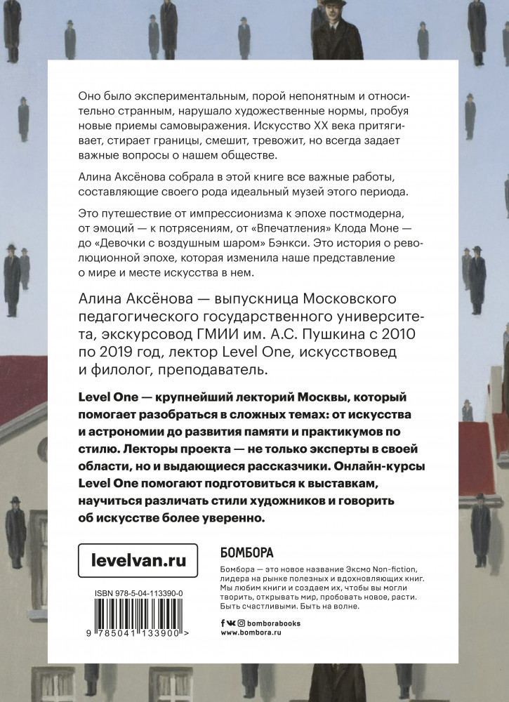 💳 Оплатить за товар можно при получении 🇰🇿 Есть бесплатная доставка по Казахстану от 1 дня 🎁 Копите бонусы с каждой покупки Серия: Level One. Новый уровень знаний Вместо картин и скульптур — банки с супом, неубранная кровать и кошачий скелет, а слово «искусство» определялось и переопределялось так много раз за последние 100 лет, что обогатилось совершенно новыми социальными, политическими и техническими смыслами. От художников до произведений, от контекста до обстоятельств создания, Алина Аксёнова расскажет всё об искусстве XX века, понятным, но серьезным слогом. Эта богато иллюстрированная и исчерпывающая книга — настоящая находка среди множества по искусству этого периода. Она позволит вам освежить свои знания и заново открыть для себя шедевры богатого художественного наследия XX века. Это еще и прочная основа для всех учеников и студентов, готовящихся к экзаменам по истории искусств. А для тех, кто уже имеет твердые художественные ориентиры, это способ переформулировать свои знания, агрегировать их или просто пересмотреть.Level One — известный московский лекторий, чьи лекторы — эксперты в своих областях и замечательные рассказчики, они помогут вам быстро узнать главное в каждой теме. |