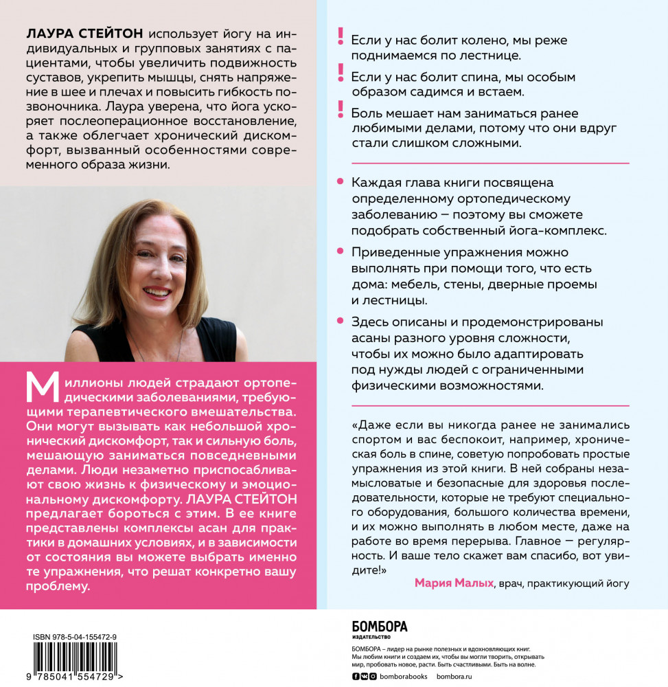 💳 Оплатить за товар можно при получении 🇰🇿 Есть бесплатная доставка по Казахстану от 1 дня 🎁 Копите бонусы с каждой покупки Серия: Время йоги. Практики, доступные каждому «Йога-терапия» написана для всех, кто страдает каким-либо ортопедическим заболеванием: это может быть позвоночная грыжа, лордоз, ишиас, кифоз и другое состояние. Все эти болезни ограничивают человека в его движении, и Лаура Стейтон, тренер по йоге и эрготерапевт, предлагает бороться, а не подчинять им свою жизнь. В книге представлены комплексы асан для практики в домашних условиях, и в зависимости от состояния вы можете выбрать именно те упражнения, что решают конкретно вашу проблему. Также в ней вы найдете много информации о дыхании, медитации, работе с мышцами тазового дна и сканировании чакр, чтобы лучше прочувствовать свое тело. Книга Лоры Стейтон поможет вам составить индивидуальный терапевтический план занятий йогой, который снизит хроническую боль, улучшит эмоциональное состояние и сделает вас энергичнее. |