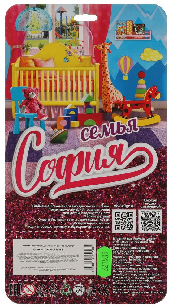 Игра с набором аксессуаров ТМ «Карапуз» позволяет строить сюжетно-ролевые линии и развивает: