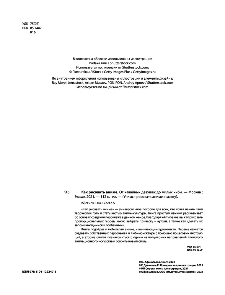 Как рисовать аниме. От кавайных девушек до милых чибиразные техники большой формат базовые рисунки для детей соответствие фото В данный момент этот товар отсутствует в продаже. Возможно, у нас найдется аналогичный или похожий товар здесь. Серия: Учимся рисовать аниме и мангу «Как рисовать аниме» — универсальное пособие для всех, кто хочет начать свой творческий путь и стать частью аниме-культуры. Книга простым языком рассказывает об основах создания персонажа в данном жанре. Благодаря ей ты узнаешь, как рисовать пропорциональных героев, какую выбрать прическу и аутфит, а также как сделать их запоминающимися и особенными. Книга подойдет и любителям аниме, и начинающим художникам. Первые научатся создавать собственных персонажей в любимом жанре с помощью пошаговых инструкций, а вторые смогут познакомиться с одним из популярных направлений японского анимационного искусства и освоить новый стиль. |