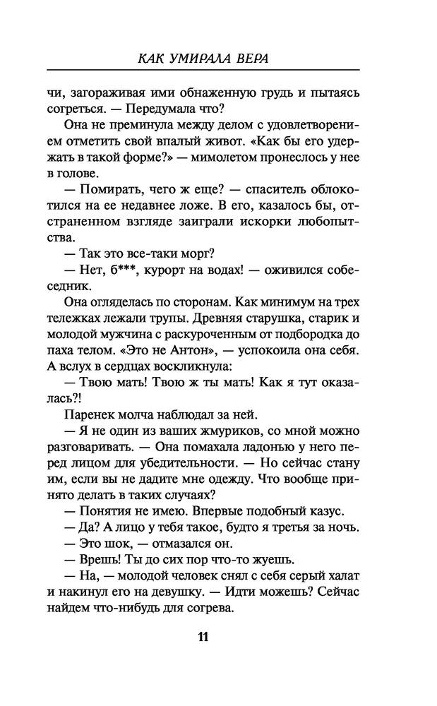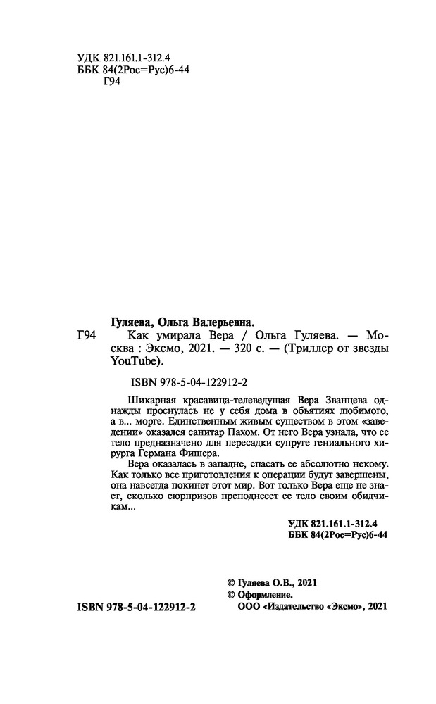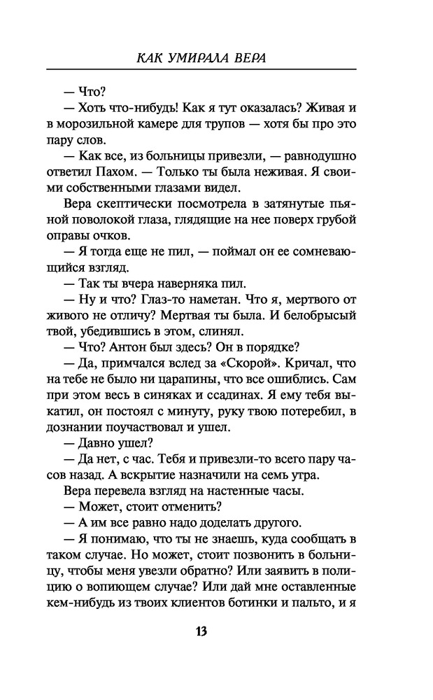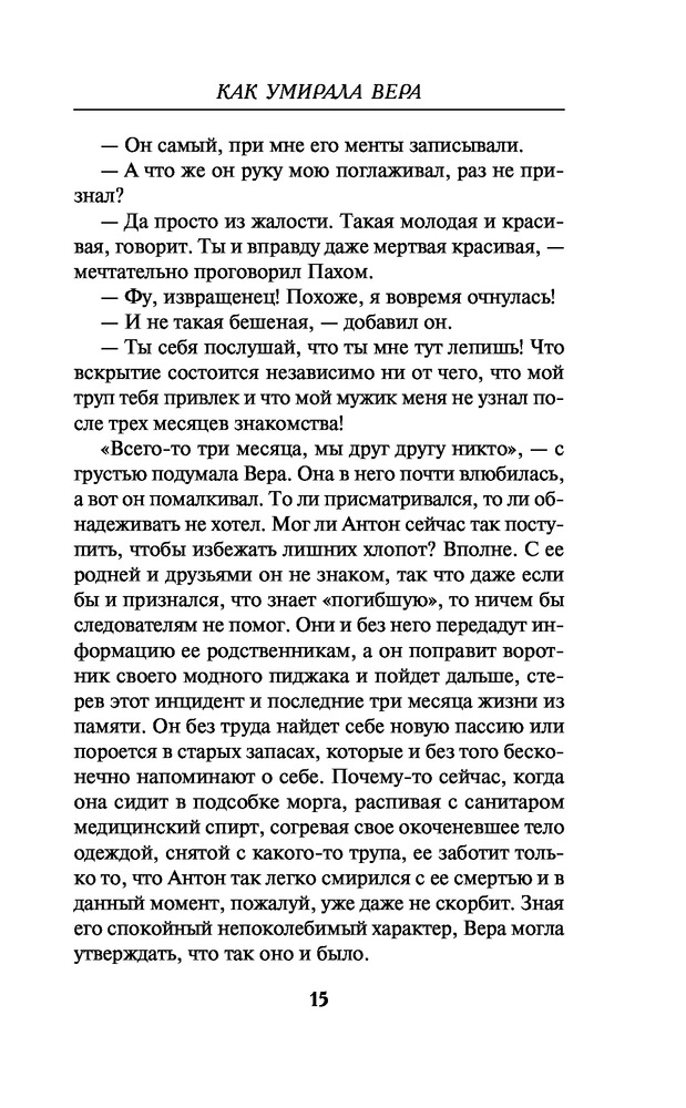 Как умирала ВераВ данный момент этот товар отсутствует в продаже. Возможно, у нас найдется аналогичный или похожий товар здесь. Серия: Триллер от звезды YouTube Шикарная красавица-телеведущая Вера Званцева однажды проснулась не у себя дома в объятиях любимого, а в... морге. Единственным живым существом в этом «заведении» оказался санитар Пахом. От него Вера узнала, что ее тело предназначено для пересадки супруге гениального хирурга Германа Фишера. Вера оказалась в западне, спасать ее абсолютно некому. Как только все приготовления к операции будут завершены, она навсегда покинет этот мир. Вот только Вера еще не знает, сколько сюрпризов преподнесет ее тело своим обидчикам. |