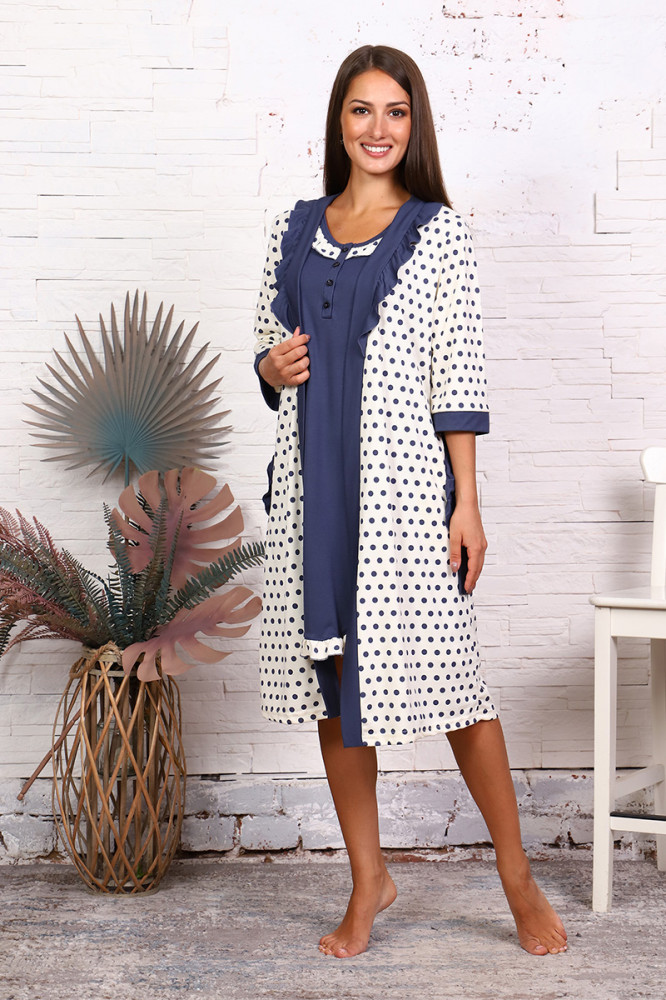 Красивый комплект. Размер, как и рассчитывала, подошел. Пошив и ткань качественные. Смотрится как на модели сайта, плюс то, что не видно на фото - это красиво оформленные воланчиками из ткани в цвет сорочки, края боковых карманов, что придает дополнительный шарм комплекту. Покупкой довольна и рекомендую.