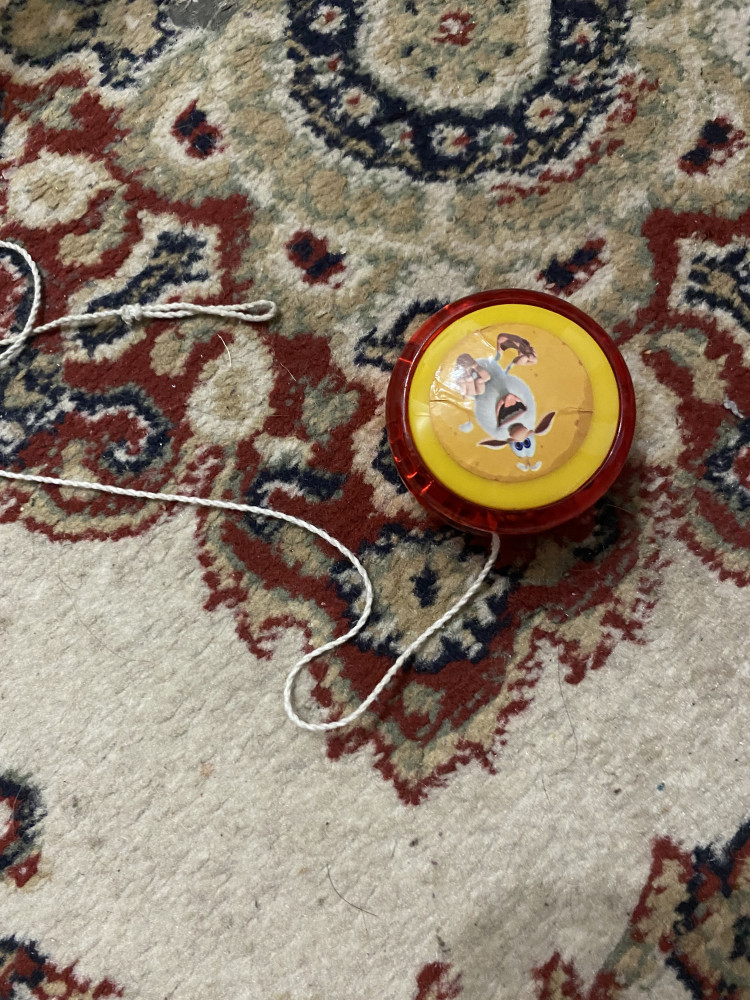 Надо ребёнку подрезать нить, что слишком высоко руку не задирать. Очень понравилось. В 90-е йо-йо был модной игрушкой.