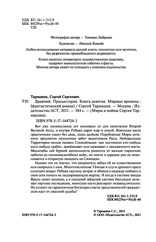 💳 Оплатить за товар можно при получении 🇰🇿 Есть бесплатная доставка по Казахстану от 1 дня 🎁 Копите бонусы с каждой покупки Серия: Миры и войны Сергея Тармашева Вот уже полмиллиона лет миновало со дня окончания Второй Великой Ассы, и внутри Рубежа царят мир и покой. Воинская каста практически сидит без дела, лишь далёкие Порубежные Миры остаются предметом неусыпных забот защитников Расы. Нейтральные Территории нельзя назвать Спокойными: там постоянно кто-нибудь кого-нибудь грабит, завоёвывает или выживает с насиженного места. Масштабы сей бурной деятельности разнятся от мелких пиратских набегов до полномасштабных войн, но никто в здравом уме не осмеливается в открытую нападать на Сияющих. |
