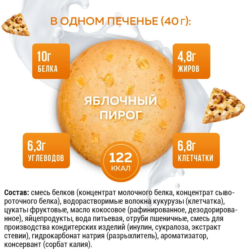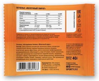 Sporty Печенье протеиновое без сахара «Яблочный пирог»