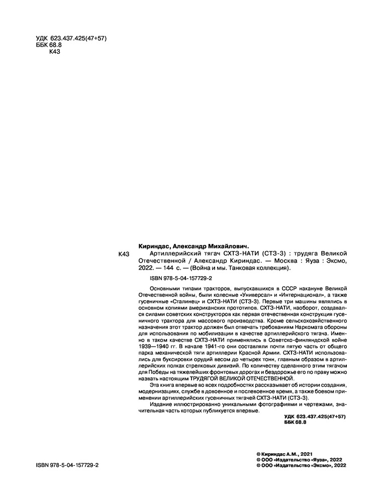 Эта книга впервые во всех подробностях рассказывает об истории создания, модернизациях, службе в довоенное и послевоенное время, а также боевом применении артиллерийских гусеничных тягачей СХТЗ-НАТИ (СТЗ-3). Издание иллюстрированно уникальными фотографиями и чертежами, значительная часть которых публикуется впервые.