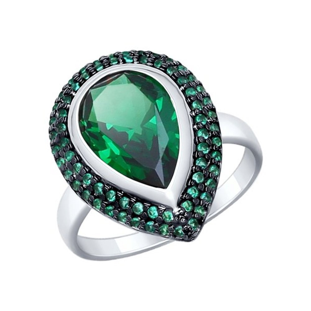 SOKOLOV Кольцо из серебра с зеленым ситаллом и фианитами