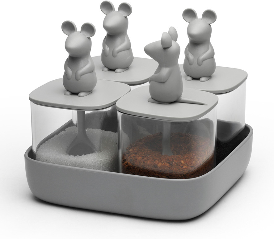 Qualy Набор банок для сыпучих продуктов с ложкой «Lucky Mouse Seasoning»+852