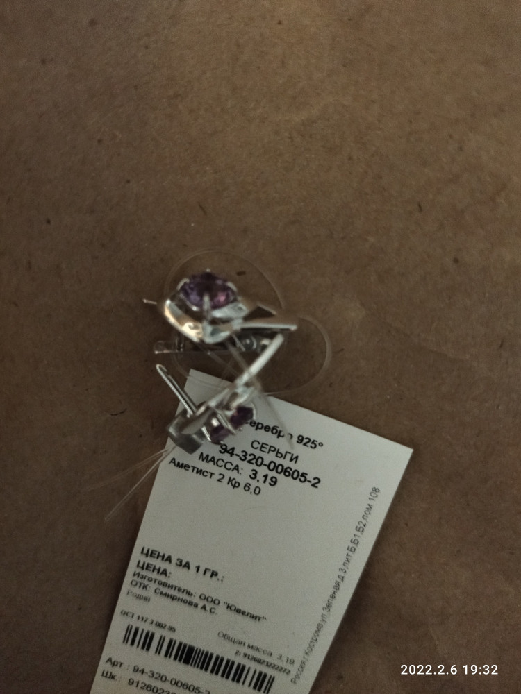 Diamant Серьги из серебра с аметистами