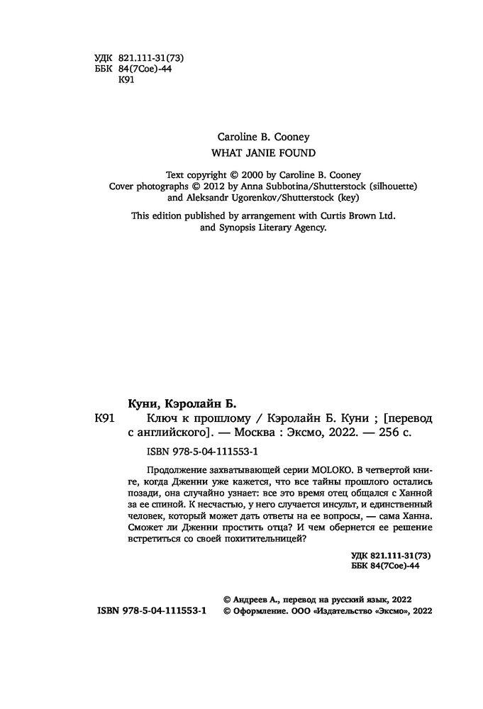 Ключ к прошломуВ данный момент этот товар отсутствует в продаже. Возможно, у нас найдется аналогичный или похожий товар здесь. Серия: MOLOKO. Кто-то разыскивает тебя по всей стране. Культовая история Продолжение захватывающей серии MOLOKO. |