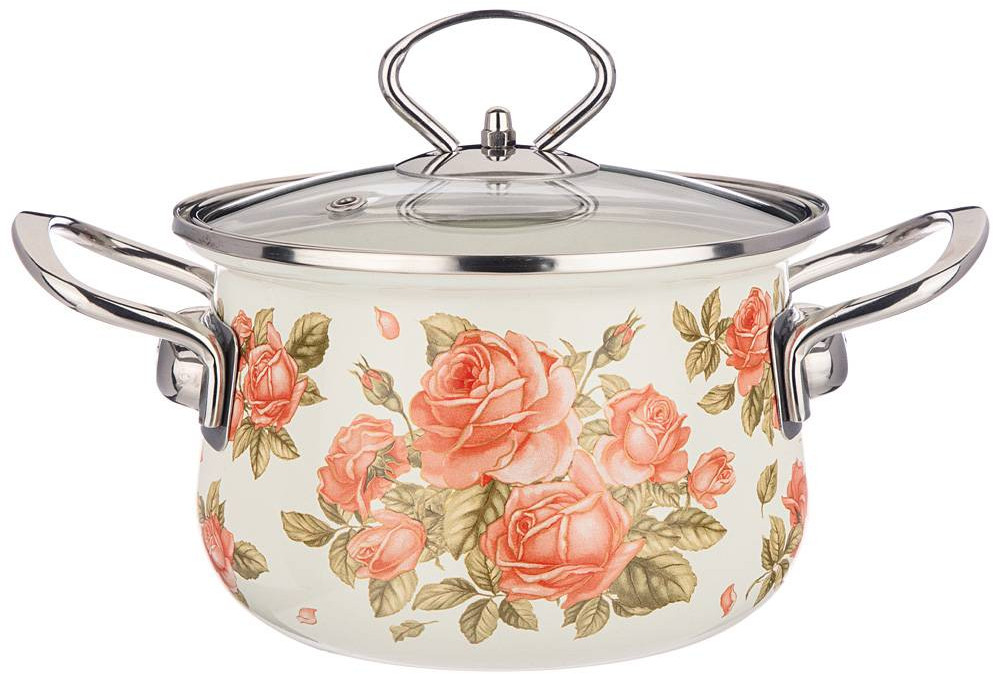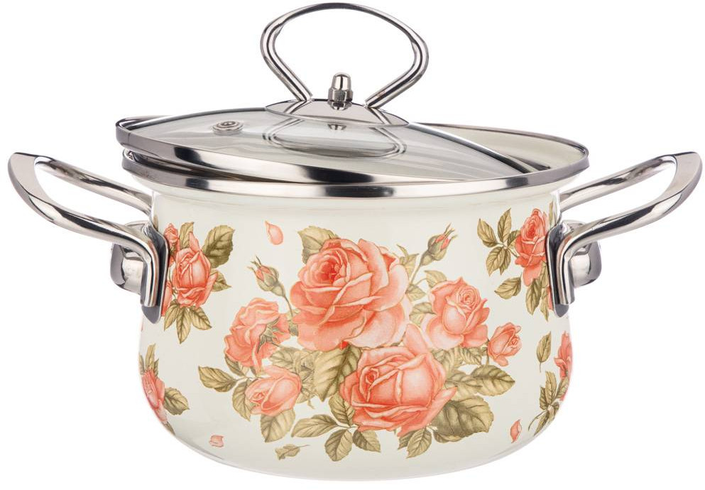 Agness Кастрюля эмалированная со стеклянной крышкой