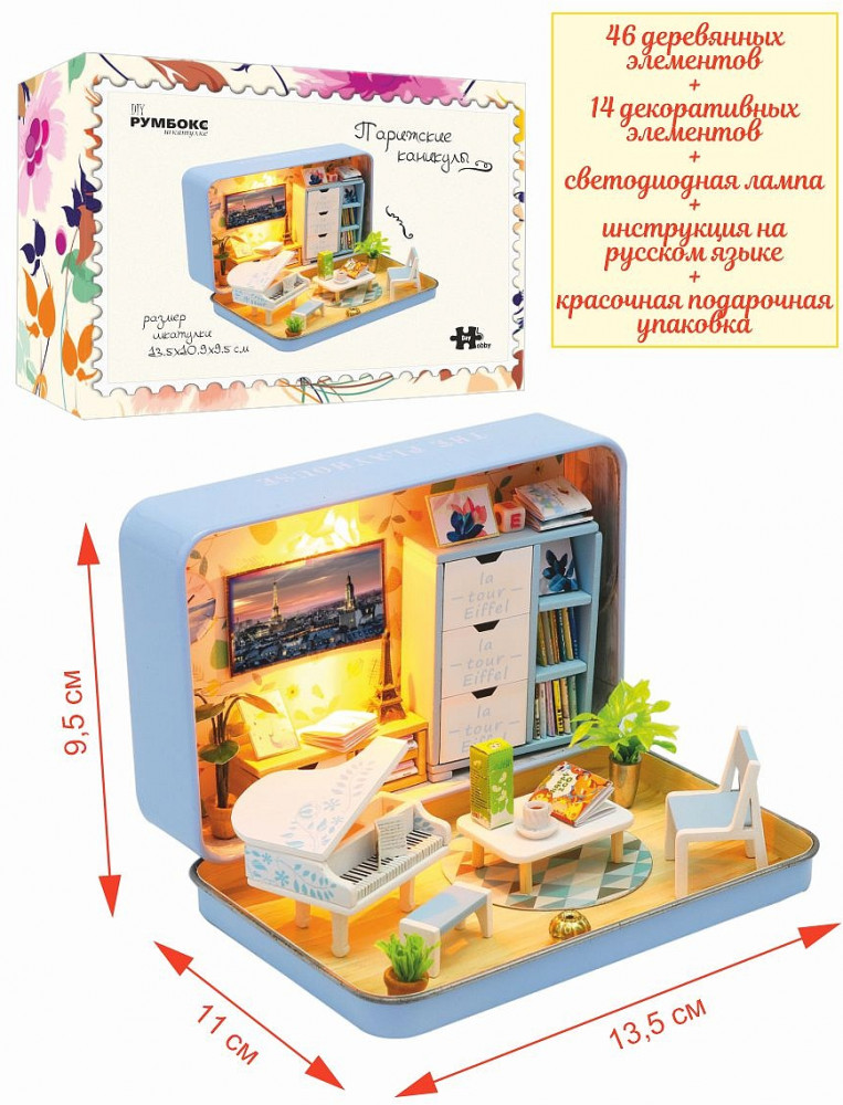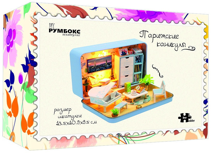Hobby Day Румбокс «Парижские каникулы, в шкатулке»В данный момент этот товар отсутствует в продаже. Возможно, у нас найдется аналогичный или похожий товар здесь. Интерьерный конструктор — это готовый набор для творчества, внутри которого вы найдете все необходимое, чтобы воссоздать собственными руками кукольный интерьер в миниатюре. |