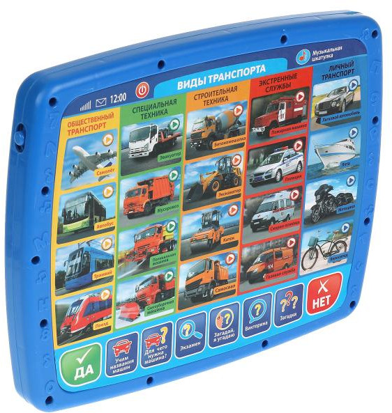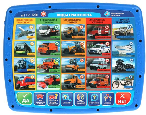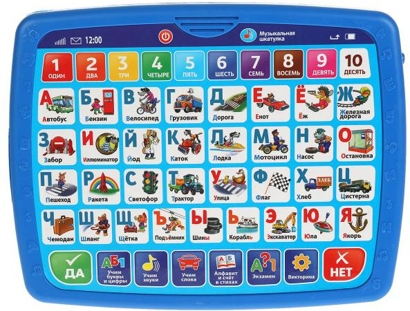 УМка Планшет двусторонний «Азбука машинок»В данный момент этот товар отсутствует в продаже. Возможно, у нас найдется аналогичный или похожий товар здесь. Игрушка-планшет — креативный и полезный подарок для развития и игры. Такой планшет поможет ребёнку быстро и эффективно выучить азбуку, основы счёта и виды транспорта. Малыш с удовольствием будет нажимать на кнопки, играть и учиться. |