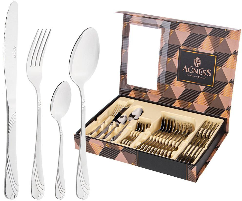Набор столовых приборов выполнен из высококачественной нержавеющей стали. Набор обладает не только оригинальным дизайном, но и практичностью, так как изделия из качественной нержавеющей стали имеют высокую прочность, устойчивость к коррозии, кроме того, нержавеющая сталь экологична, она не меняет вкусовые свойства еды, потому как не вступает в реакцию с ее компонентами.