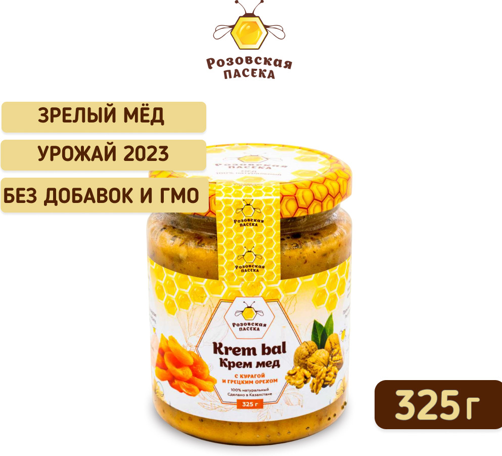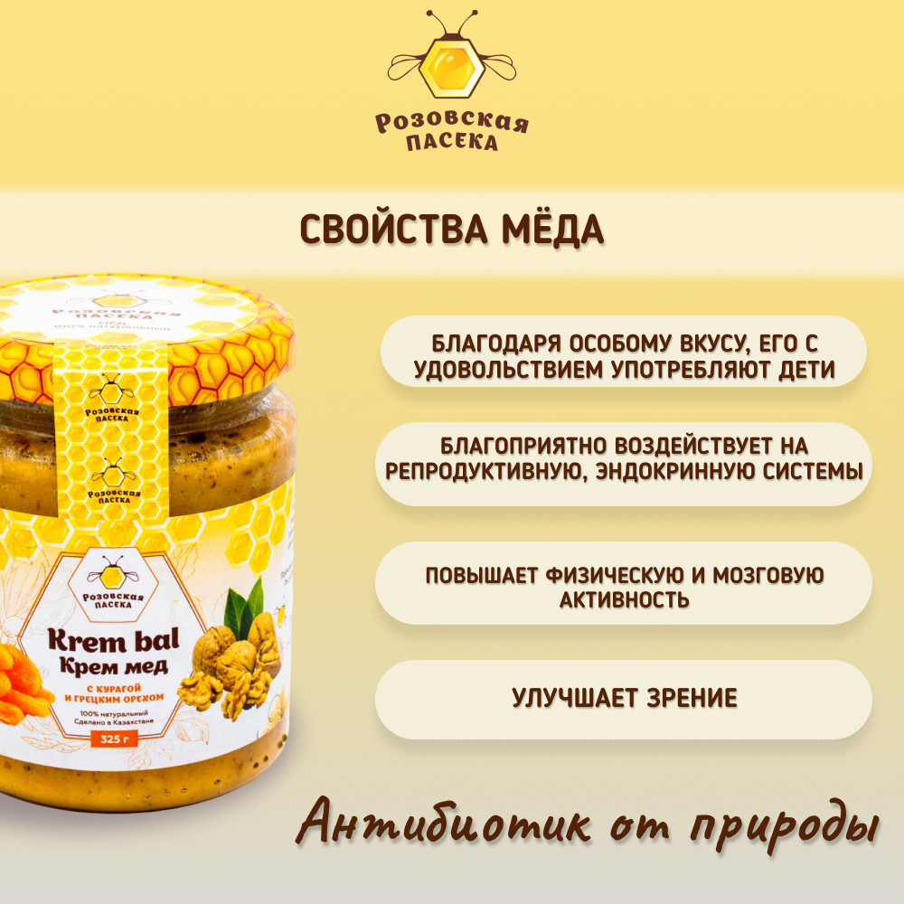 Розовская пасека Крем-мед с курагой и грецким орехом