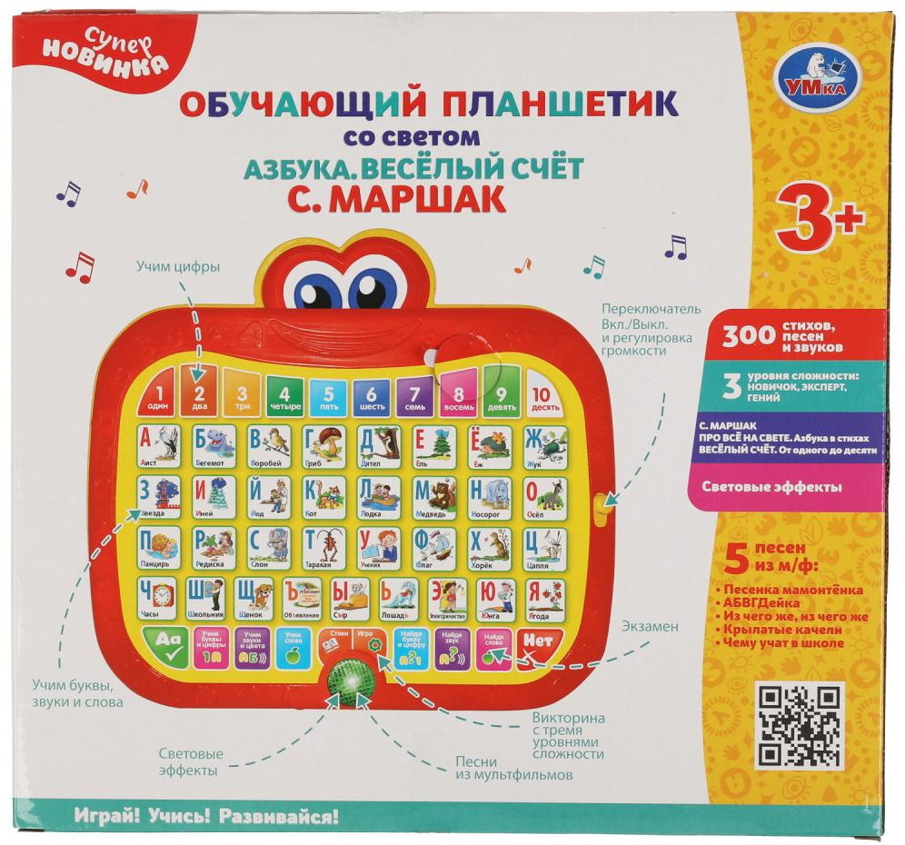 УМка Планшет обучающий «С. Маршак. Первая азбука»В данный момент этот товар отсутствует в продаже. Возможно, у нас найдется аналогичный или похожий товар здесь. Ваш малыш непременно полюбит этот яркий планшет. С ним ребёнок быстро и эффективно выучит буквы, слоги, звуки, слова, цифры и формы. Малыш с удовольствием будет нажимать на кнопки, слушать замечательные стихотворения Самуила Яковлевича Маршака и играть. А экзаменационный режим поможет проверить новые знания. |