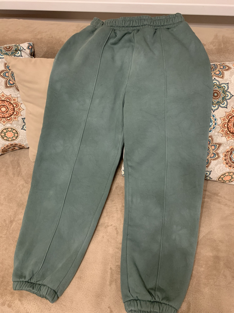 Доставка в срок. В описании - свободный силуэт, в действительности на пару размеров больше, оттопырены бока из за плотности ткани. Хорошо, что на резинке пояс, держатся. Сразу прополоскала в холодной воде со стабилизатором цвета, т.к этикетка уже была окрашена в цвет штанов, не помогло! Теперь штаны цвета «Голубая ель поплывшая». Постепенно начинаю разочаровываться в фирме производителя. Качество портится.