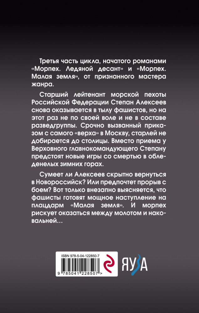 💳 Оплатить за товар можно при получении 🇰🇿 Есть бесплатная доставка по Казахстану от 1 дня 🎁 Копите бонусы с каждой покупки Серия: Военно-историческая фантастика Третья часть цикла, начатого романами «Морпех. Ледяной десант» и «Морпех. Малая земля» от признанного мастера жанра. |
