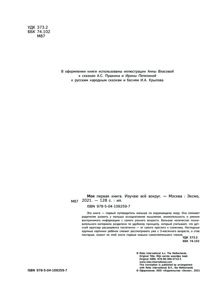 💳 Оплатить за товар можно при получении 🇰🇿 Есть бесплатная доставка по Казахстану от 1 дня 🎁 Копите бонусы с каждой покупки Серия: Атласы и энциклопедии Эта книга — первый путеводитель малыша по окружающему миру. Она поможет родителям развить у малыша ассоциативное мышление, внимательность и умение воспринимать информацию с самого раннего возраста. Большое количество познавательного материала разделено по удобному принципу, который учитывает, что детский кругозор расширяется постепенно — от самого простого к сложному. Наглядные крупные картинки ребёнок сможет рассматривать уже с 3-месячного возраста, а став постарше, освоит по этой книге первые навыки самостоятельного чтения. |