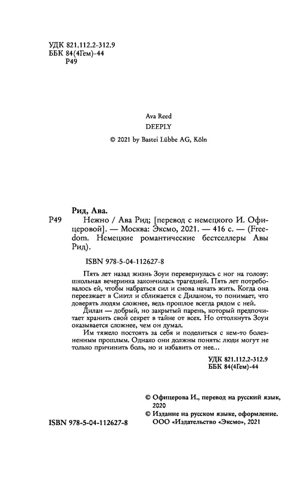 Серия: Freedom. Немецкие романтические бестселлеры Авы Рид Пять лет назад жизнь Зоуи перевернулась с ног на голову: школьная вечеринка закончилась трагедией. Пять лет потребовалось ей, чтобы набраться сил и снова начать жить. Когда она переезжает в Сиэтл и сближается с Диланом, то понимает, что доверять людям сложнее, ведь прошлое всегда рядом с ней. |