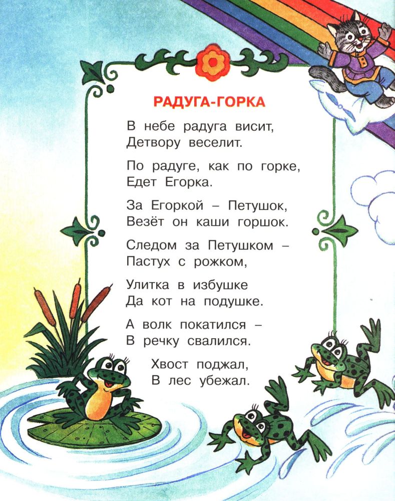 Радуга-горкаВладимир Александрович Степанов В данный момент этот товар отсутствует в продаже. Возможно, у нас найдется аналогичный или похожий товар здесь. Серия: Потешки для малышей Потешки для малышей с красочными иллюстрациями. |