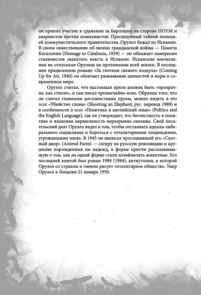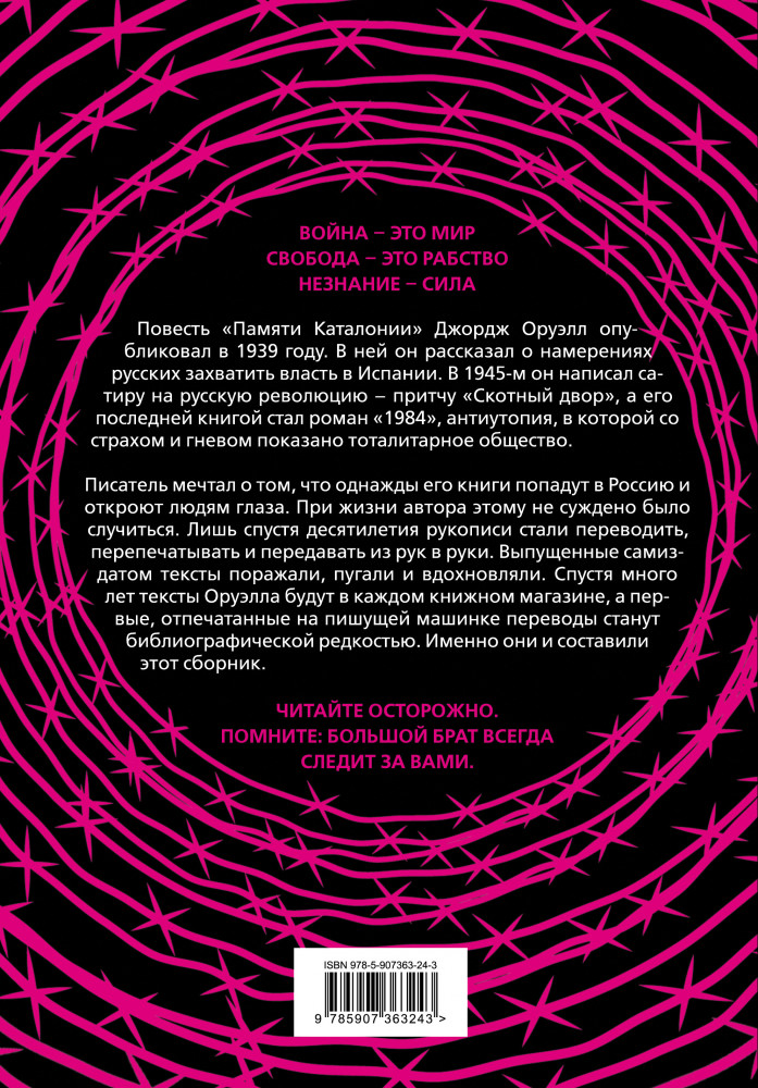 1984. Скотный двор. Памяти Каталонии. Коллекционное иллюстрированное изданиеВ данный момент этот товар отсутствует в продаже. Возможно, у нас найдется аналогичный или похожий товар здесь. Серия: Подарочные издания. Иллюстрированная классика Повесть «Памяти Каталонии» Джордж Оруэлл опубликовал в 1939 году. В ней он рассказал о намерениях русских захватить власть в Испании. В 1945 он написал сатиру на русскую революцию — притчу «Скотный двор», а его последней книгой стал роман «1984», антиутопия, в которой со страхом и гневом показано тоталитарное общество. Писатель мечтал о том, что однажды его книги попадут в Россию и откроют людям глаза. При жизни автора этому не суждено было случиться. Лишь спустя десятилетия рукописи стали переводить, перепечатывать и передавать из рук в руки. Выпущенные самиздатом тексты поражали, пугали и вдохновляли. Спустя много лет тексты Оруэлла будут в каждом книжном магазине, а первые, отпечатанные на пишущей машинке, переводы станут библиографической редкостью. Именно они и составили этот сборник. Читайте осторожно. Помните, Большой брат всегда следит за вами. |