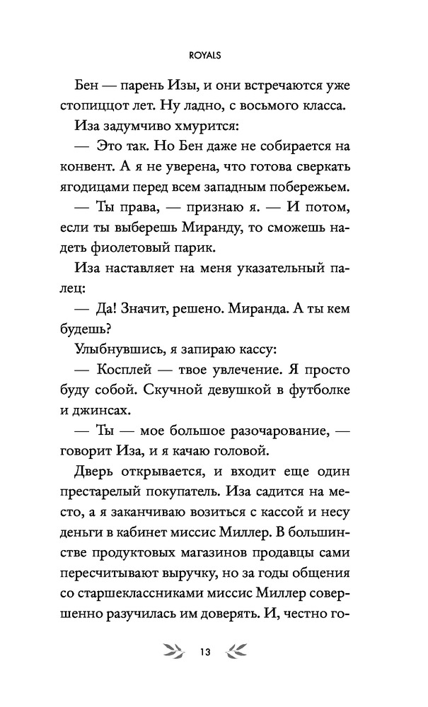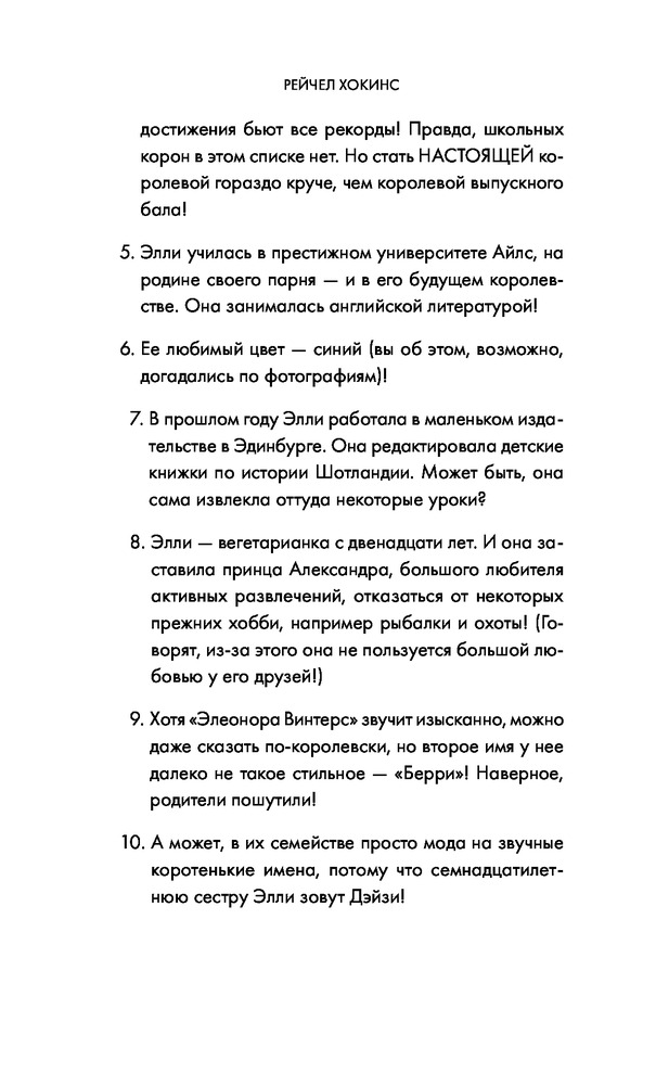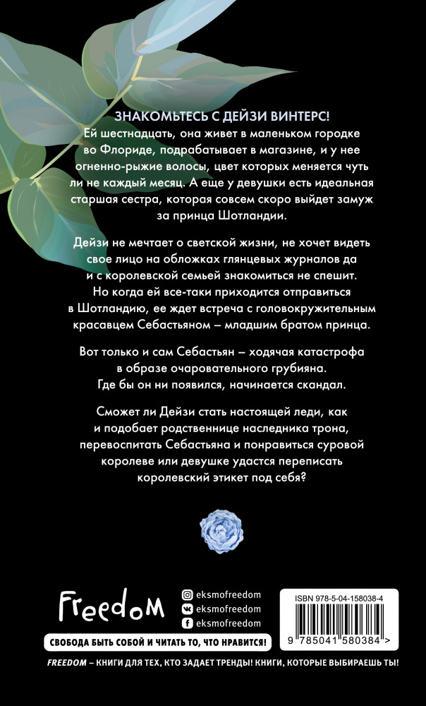 Ночью закончила чтение этой хотелось бы добавить свое мнение о ней. История нам рассказывает о нашей гг которую выдают замуж за члена королевской семье. Она девушка из простой семьи , а принц родом из знатной шотландской что даёт знать из разницу в статусе. Мне было очень весело с этой книги в ней много смешных шуток особенно со стороны отца гг лучший персонаж и ее любовным интересом который на мои взгляд достаточно милый парень. Я хорошо расслабилась с этой историей ставлю ей 10/10