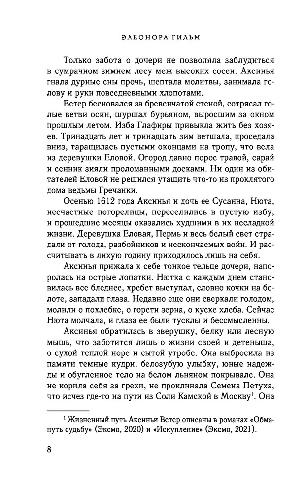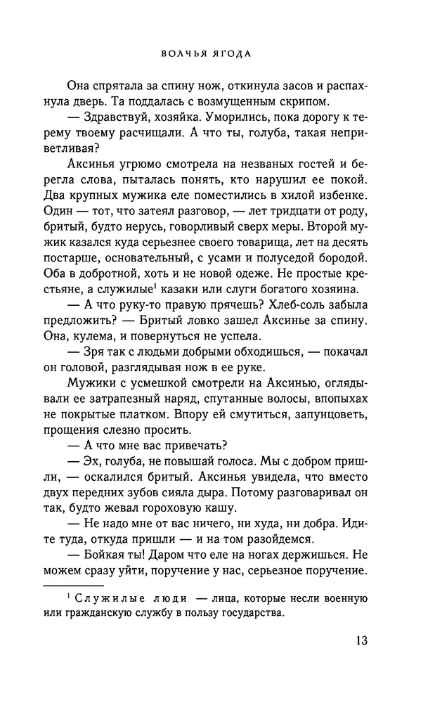мне понравилась книга, это третья о судьбе Аксиньи Вороновой. читаю с удовольствием. много рассказано о жизни крестьян на Руси. написано хорошо и легко читается.