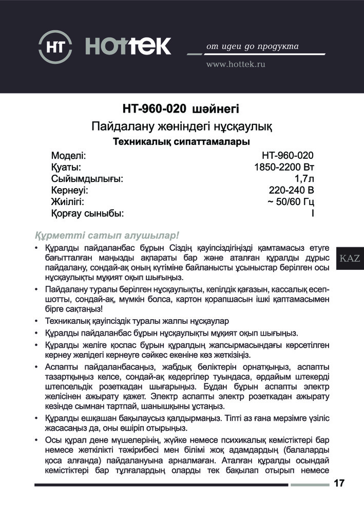 HOTTEK Чайник HT-960-020