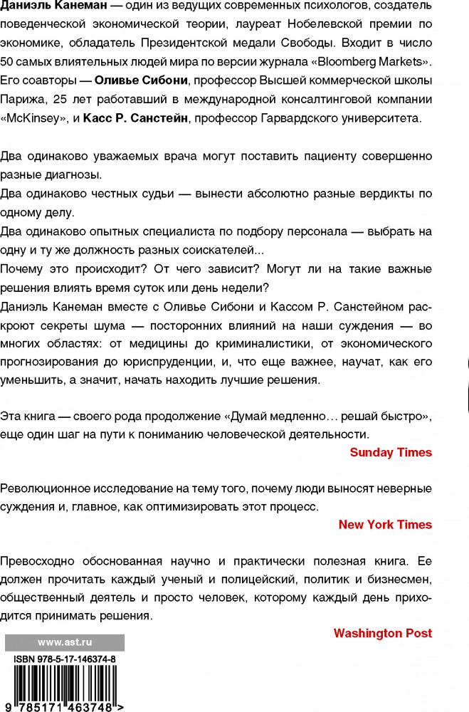Шум. Несовершенство человеческих сужденийДаниэль Канеман, Касс Санстейн, Оливье Сибони +249