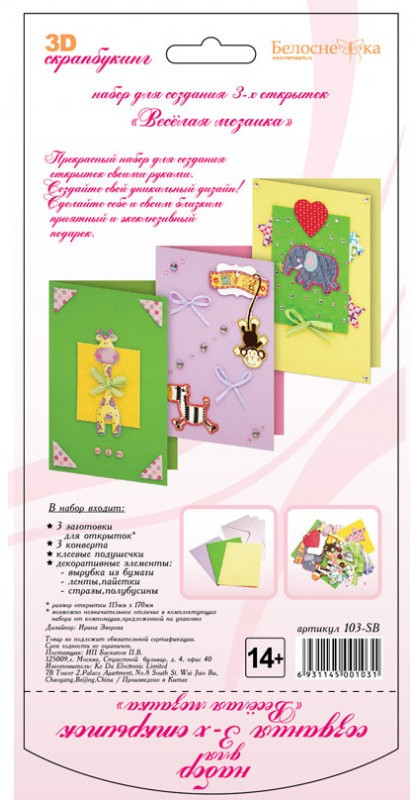Белоснежка Набор для создания открыток «Веселая мозаика»-25% +46