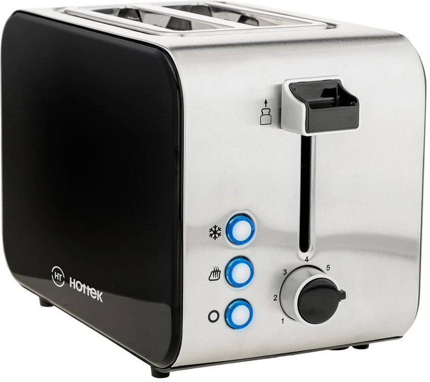 Забудьте про привычные скучные бутерброды и начинайте завтракать не только полноценно, но и вкусно! Вкуснейшие тосты на завтрак, приготовленные в стильном тостере HT-972-051, зададут нужный тон вашему дню и подзарядят вас до самого обеда. Тостер выполнен из высококачественной нержавеющей стали. Имеется 7 уровней степени поджаривания тостов, что позволит регулировать желаемую степень готовности. Автоматическое центрирование обеспечивает правильное расположение ломтиков хлеба, благодаря чему они пропекаются равномерно. Кроме функций остановки приготовления и разогрева, тостер оснащён функцией размораживания, с помощью который вы можете готовить тосты из замороженного хлеба. Для удобства имеется LED индикация голубого цвета, благодаря которой можно отслеживать работу прибора.