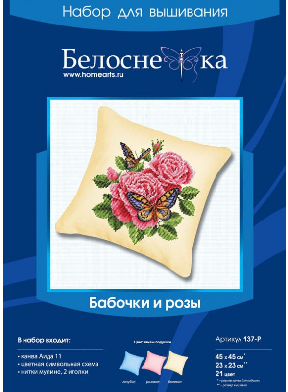 Белоснежка Набор для вышивания подушки «Бабочки и розы»-25% +211