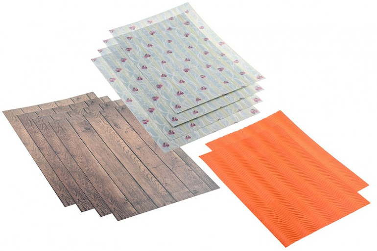 • бумага для скрапбукинга 18 × 25,5 см. односторонняя матовая - 8 листов, гофрированная - 2 листа, 16,8 × 18,2 - 1 лист;