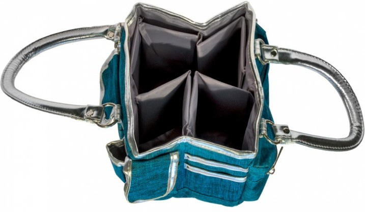 Снаружи сумка снабжена двенадцатью карманами: девять открытых разного размера, большое отделение на молнии и два на липучке. Стенки и дно сумки утолщённые, хорошо держат форму, дно плоское, устойчивое. Внутреннюю часть большого отделения можно моделировать, для этого предусмотрены 4 складных кармана со стенками, усиленными плотным картоном, просто разложите любой из карманов и у вас получится новое удобное место для хранения. Сумка без верхнего клапана, можно помещать негабаритные предметы! С сумкой для рукоделия доступно оперативное управление запасами — размещай, пользуйся, храни!