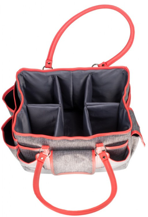 Снаружи сумка снабжена двенадцатью карманами: девять открытых разного размера, большое отделение на молнии и два на липучке. Стенки и дно сумки утолщённые, хорошо держат форму, дно плоское, устойчивое. Внутреннюю часть большого отделения можно моделировать, для этого предусмотрены 4 складных кармана со стенками, усиленными плотным картоном, просто разложите любой из карманов и у вас получится новое удобное место для хранения. Сумка без верхнего клапана, можно помещать негабаритные предметы! С сумкой для рукоделия доступно оперативное управление запасами — размещай, пользуйся, храни!