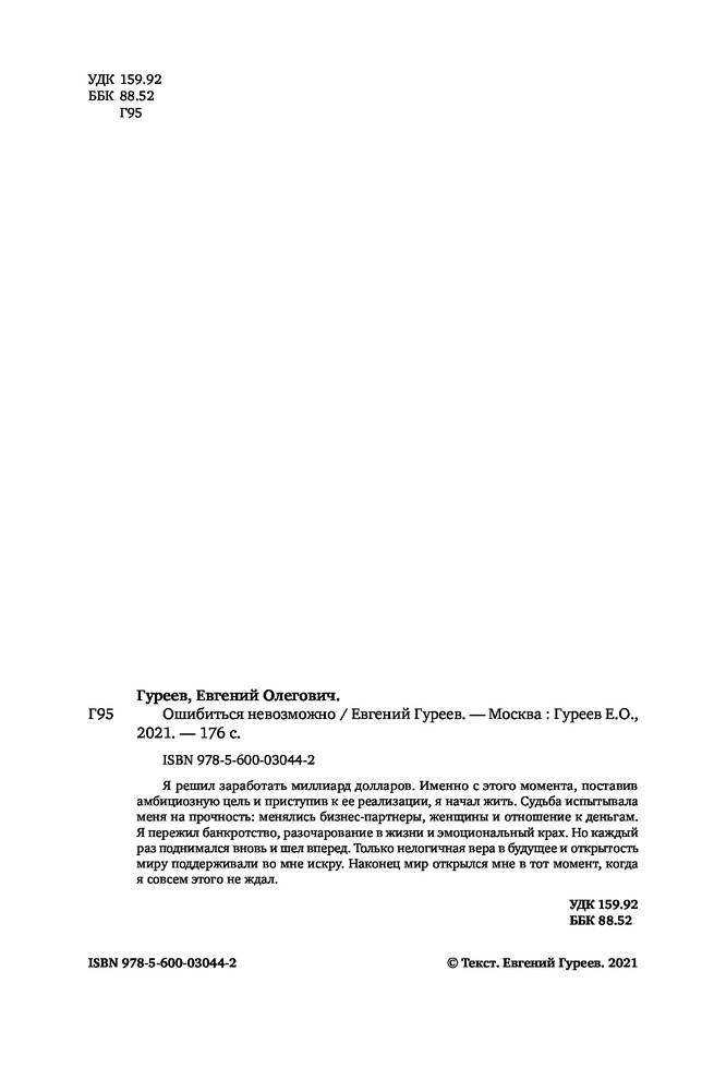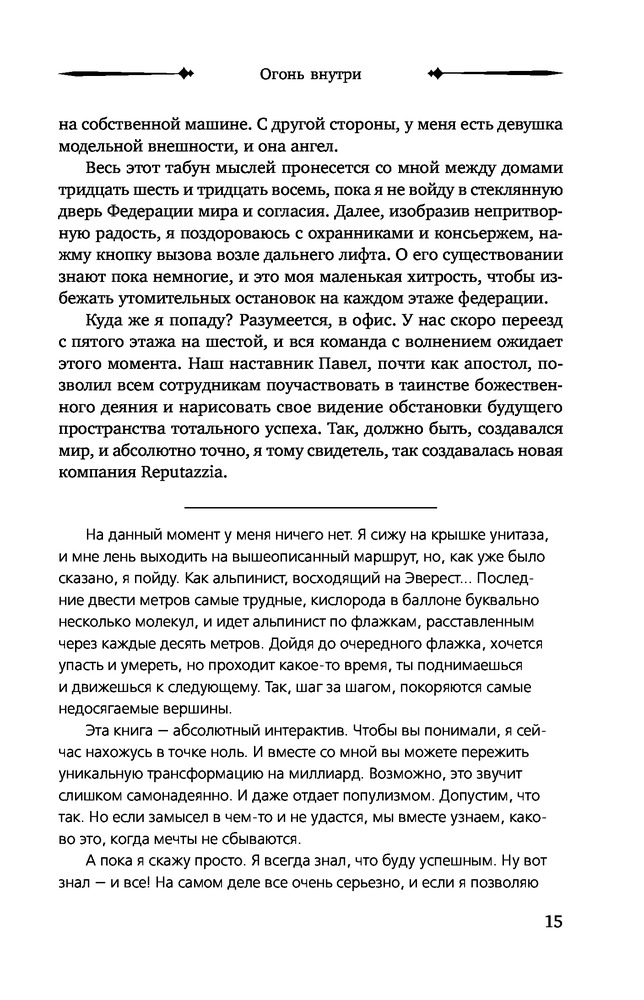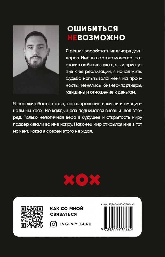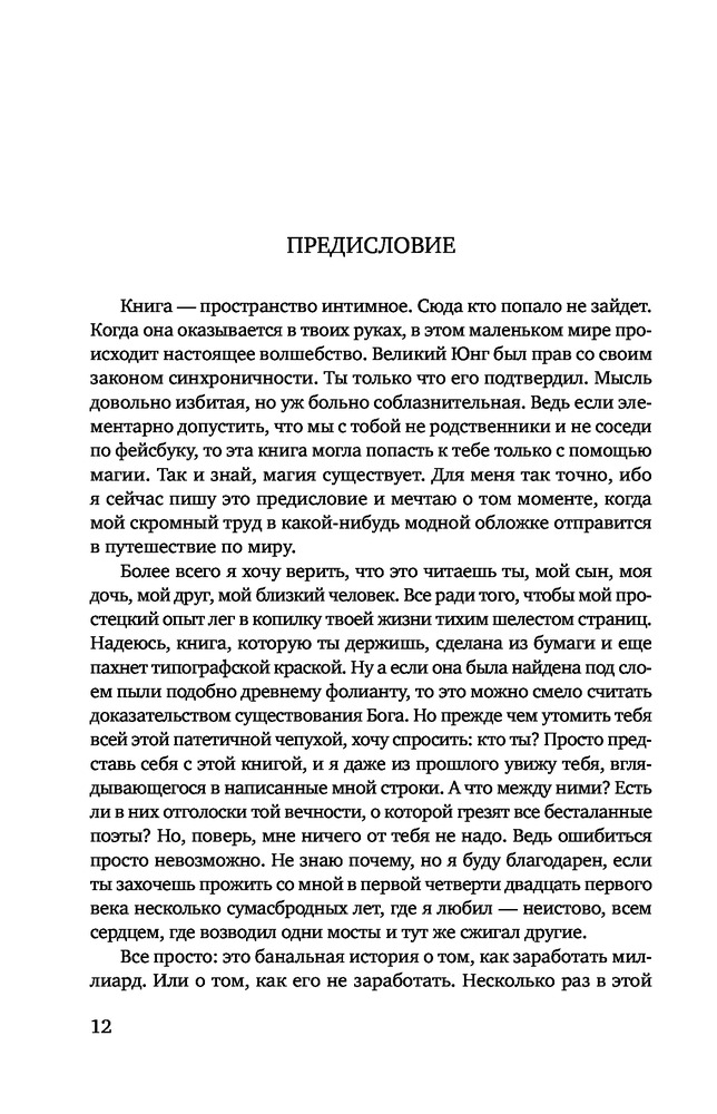 💳 Оплатить за товар можно при получении 🇰🇿 Есть бесплатная доставка по Казахстану 🎁 Копите бонусы с каждой покупки Серия: Бизнес-роман Я решил заработать миллиард долларов. Именно с этого момента, поставив амбициозную цель и приступив к ее реализации, я начал жить. Судьба испытывала меня на прочность: менялись бизнес-партнеры, женщины и отношение к деньгам. Я пережил банкротство, разочарование в жизни и эмоциональный крах. Но каждый раз поднимался вновь и шел вперед. Только нелогичная вера в будущее и открытость миру поддерживали во мне искру. Наконец мир открылся мне в тот момент, когда я совсем этого не ждал. |