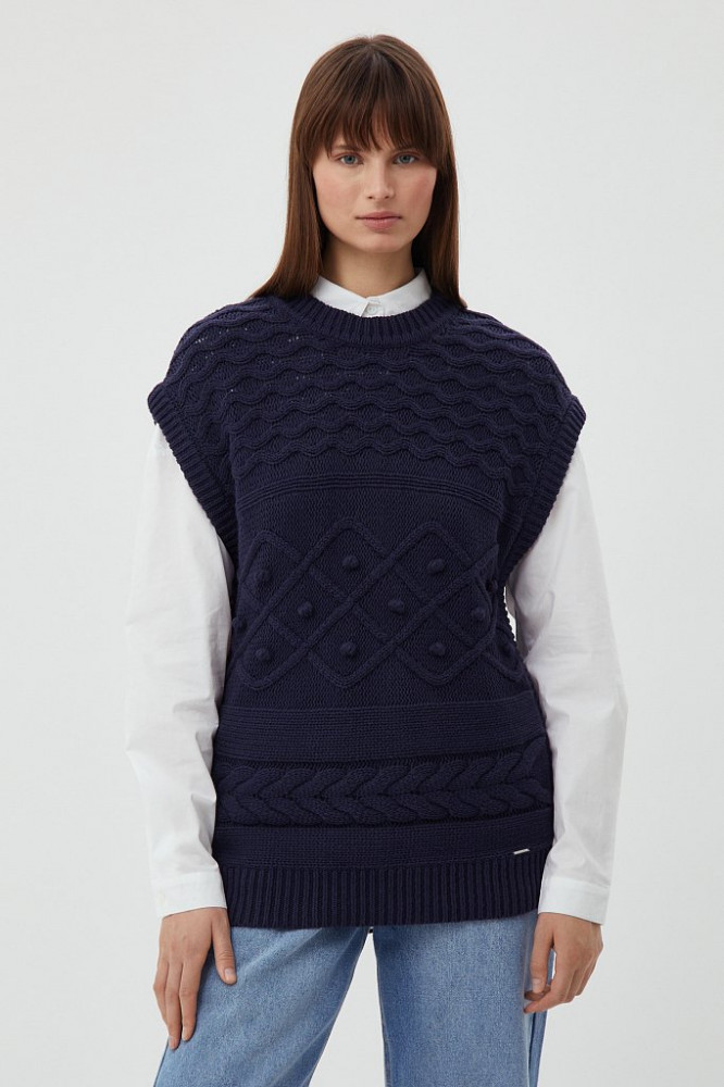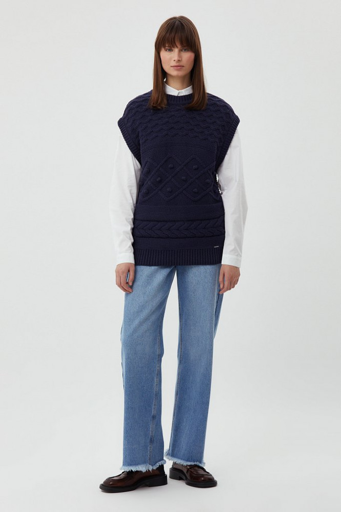 Трикотажный жилет прямого кроя. Актуальная стильная модель дополнит как деловой, так и casual образ.