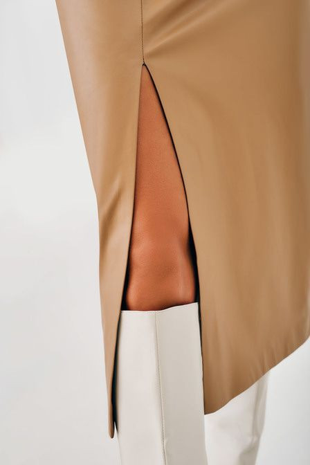 Дополню свой отзыв, ткань достаточно сильно мнется, и в верхней части разреза нить слегка тянет и рвет эту самую экокожу, слегка, но есть, лучше укрепить как то это место в ателье