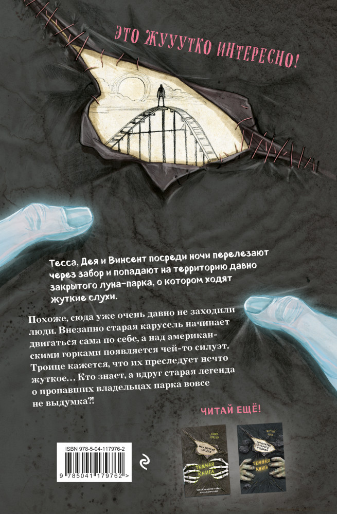 Парк призраков (выпуск 2)В данный момент этот товар отсутствует в продаже. Возможно, у нас найдется аналогичный или похожий товар здесь. Серия: Детск. Тёмные книги Тесса, Лея и Винсент посреди ночи перелезают через забор и попадают на территорию давно закрытого луна-парка, о котором ходят жуткие слухи. Похоже, сюда уже очень давно не заходили люди. Внезапно старая карусель начинает двигаться сама по себе, а над американскими горками появляется чей-то силуэт. Троице кажется, что их преследует нечто жуткое... Кто знает, а вдруг старая легенда о пропавших владельцах парка вовсе не выдумка?! |