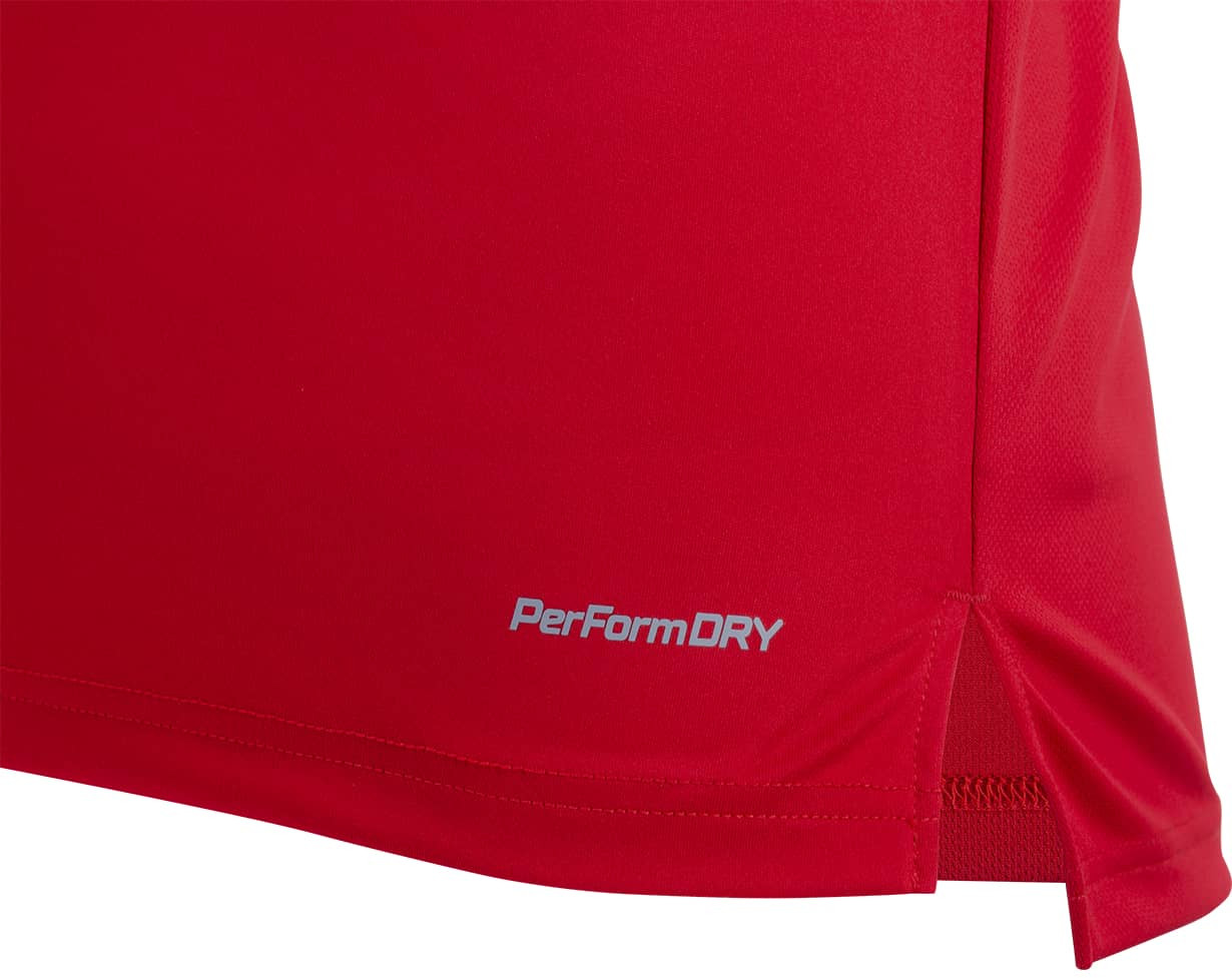 Игровая футболка из линейки «Division» создана специально для экипировки профессиональных команд. Модель выполнена из комбинированного сетчатого материала с применением технологии эффективного влагоотведения «PerFormDRY». Легкая ткань отличается высокой прочностью и хорошей воздухопроницаемостью. Кроме того, на спине ткань отличается от ткани спереди и имеет улучшенную вентиляцию. Вы будете чувствовать себя на высоте даже в самой «жаркой» игре. Продуманная до мелочей конструкция не ограничивает свободу движений. Атлетический крой, небольшие разрезы по бокам, удлиненная задняя часть футболки — все это поможет вам с комфортом оттачивать свое мастерство и завоевывать новые трофеи. С правой стороны располагается белый логотип, сделанный из специального силиконового материала по технологии 3D нанесения. Особенностью модели являются полуконтрастные манжеты по низу рукава.