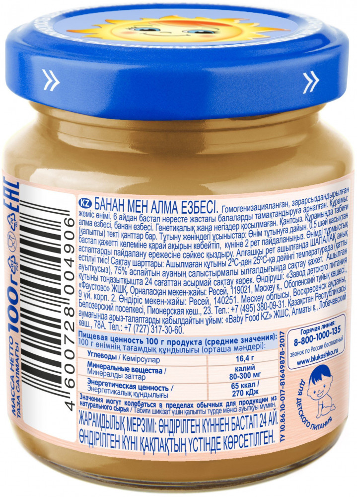 Бабушкино Лукошко Пюре детское «Яблоко и банан»