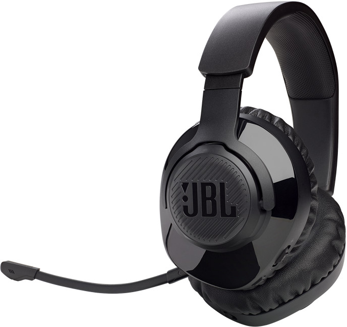 Беспроводная игровая гарнитура JBL Quantum 350 с технологией JBL QuantumSOUND Signature, съемным микрофоном и 22 часами работы от аккумулятора.
