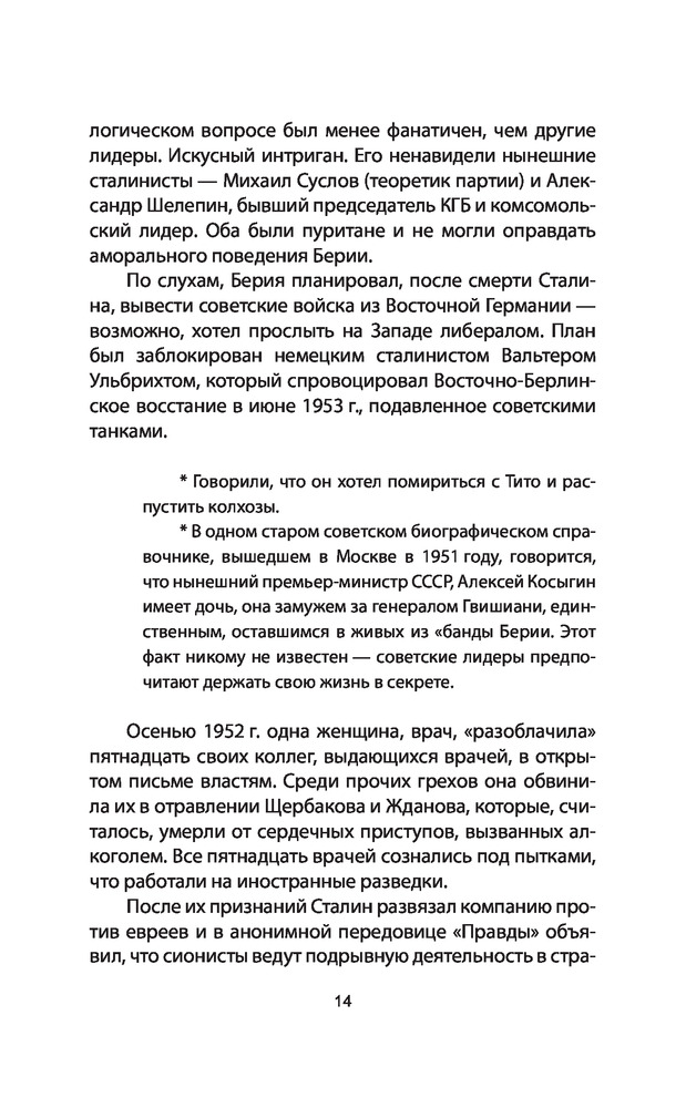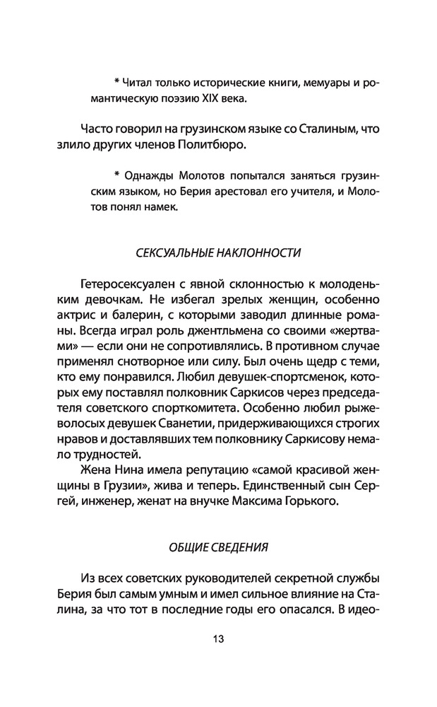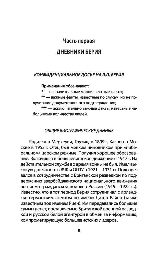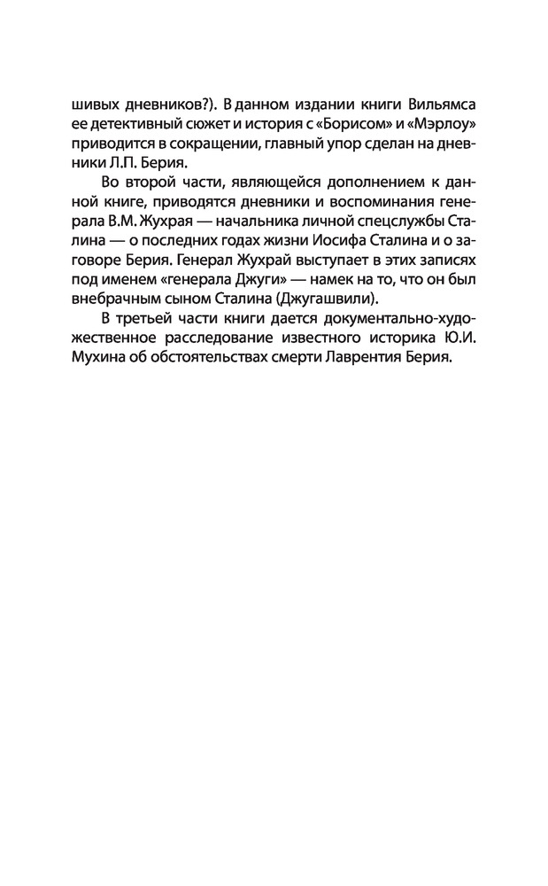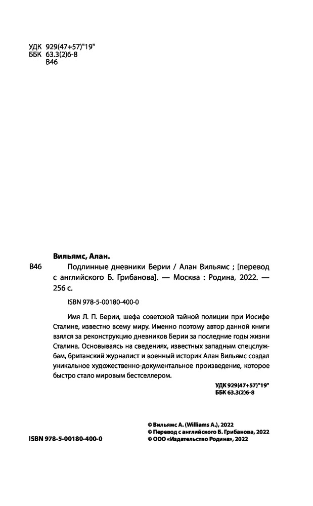 Подлинные дневники БерииВ данный момент этот товар отсутствует в продаже. Возможно, у нас найдется аналогичный или похожий товар здесь. Серия: Звонок от Сталина Имя Л.П. Берия, шефа советской тайной полиции при Иосифе Сталине, известно всему миру. Именно поэтому автор данной книги взялся за реконструкцию дневников Берии в последние годы жизни Сталина. Основываясь на сведениях, известных западным спецслужбам, британский журналист и военный историк Алан Вильямс создал уникальное художественно-документальное произведение, которое быстро стало мировым бестселлером. |