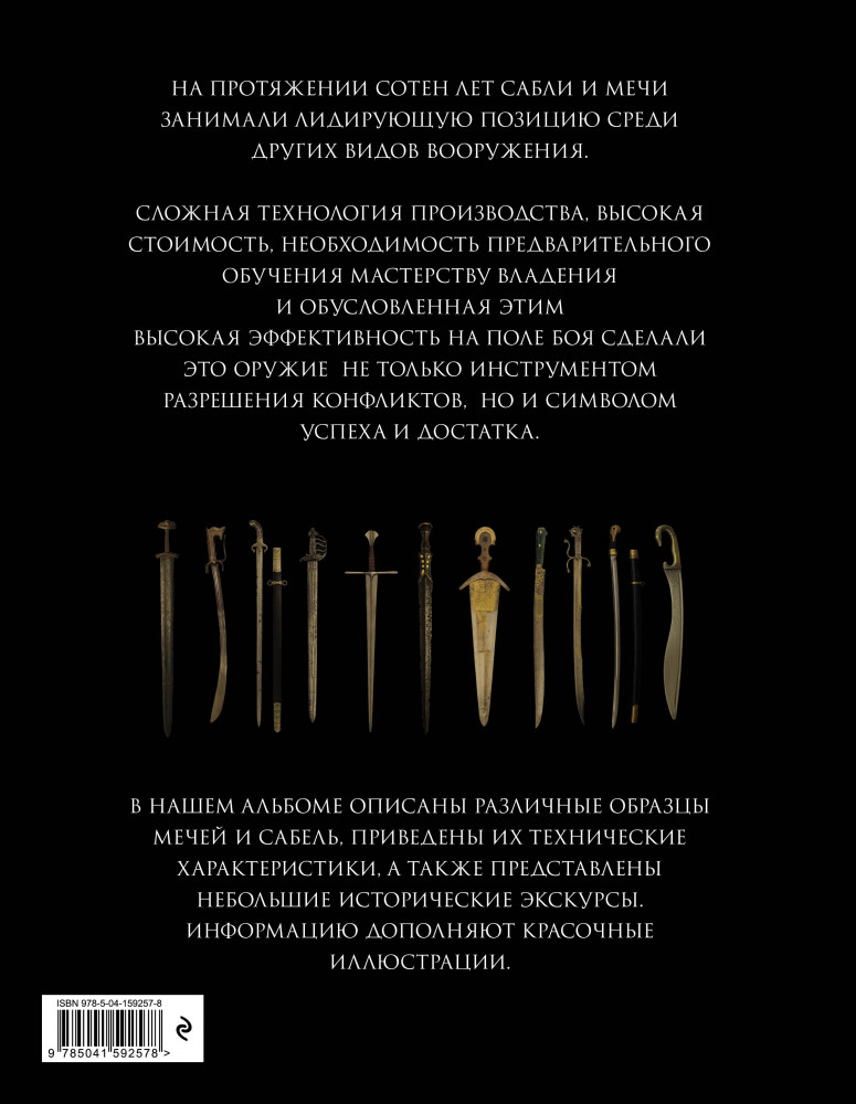 Сабли и мечи. Виды, история, конструкцияВ данный момент этот товар отсутствует в продаже. Возможно, у нас найдется аналогичный или похожий товар здесь. Серия: Подарочные издания. Оружие С давних времен холодное оружие было символом мужества, власти, достатка и успеха. С одной стороны, оружие защищало жизнь владельца, с другой — служило предметом искусства. Наша книга посвящено одному из видов холодного оружия — длинноклинковому. Вы найдете описания различных образцов мечей и сабель, познакомитесь с их техническими характеристиками, а также окунетесь в небольшие исторические экскурсы. Книга прекрасно иллюстрирована, и будет интересна и полезна на не только специалистам и коллекционерам, но и широкому кругу читателей. |