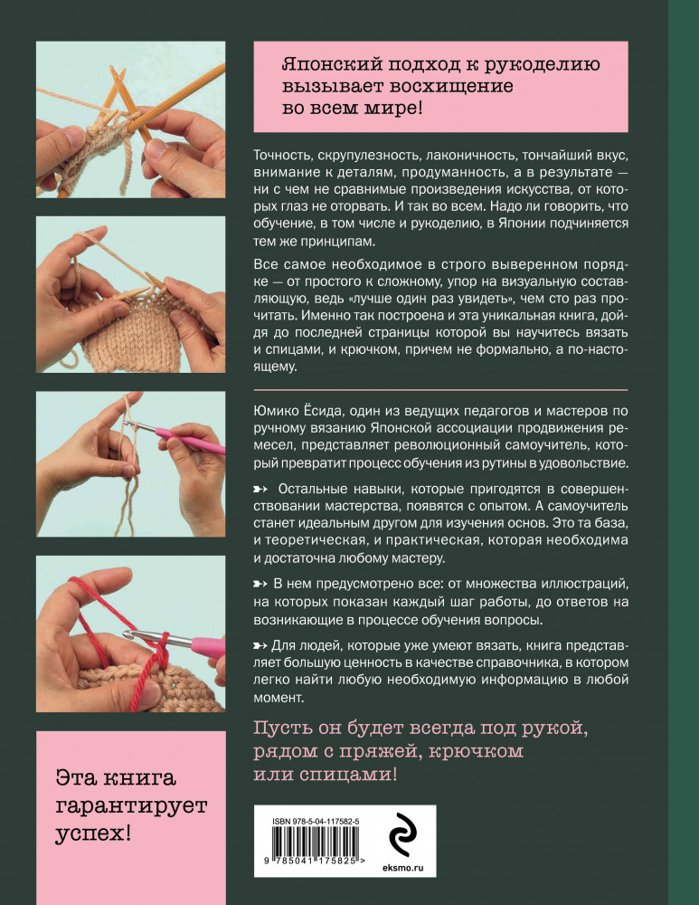 Ручное вязание спицами и крючком. Визуальный японский самоучитель. Научитесь вязать быстро и правильноВ данный момент этот товар отсутствует в продаже. Возможно, у нас найдется аналогичный или похожий товар здесь. Серия: Звезды рукоделия. Бестселлер из Японии Японский подход к рукоделию вызывает восхищение во всем мире! Точность, скрупулезность, лаконичность, тончайший вкус, внимание к деталям, продуманность, а в результате — ни с чем не сравнимые произведения искусства, от которых глаз не оторвать. И так во всем. Надо ли говорить, что обучение, в том числе и рукоделию, в Японии подчиняется тем же принципам. Все самое необходимое в строго выверенном порядке от простого к сложному, упор на визуальную составляющую, ведь «лучше один раз увидеть», чем сто раз прочитать. Именно так построена и эта уникальная книга, дойдя по последней страницы которой, вы научитесь вязать и спицами, и крючком, причем не формально, а по-настоящему. |