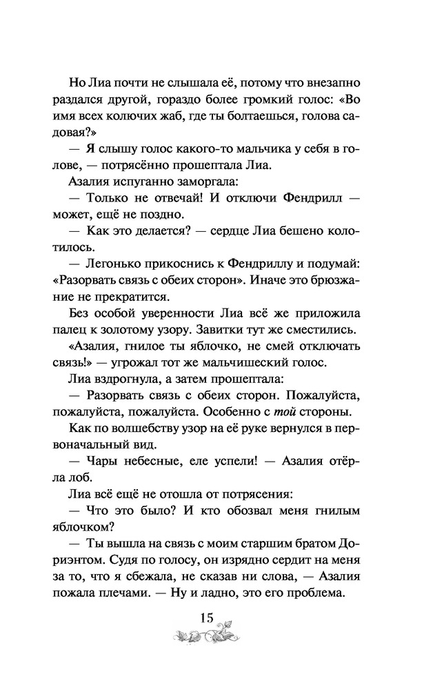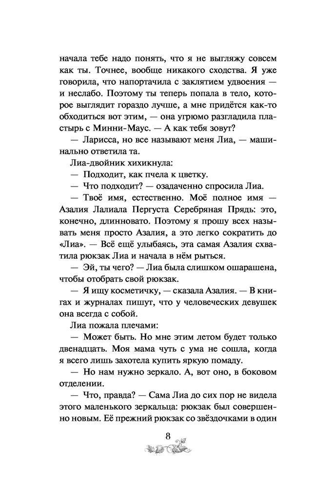 💳 Оплатить за товар можно при получении 🇰🇿 Есть бесплатная доставка по Казахстану от 1 дня 🎁 Копите бонусы с каждой покупки Серия: Лиа Златогром, эльфийская принцесса Лиа Дорнмайер — обычная девочка. Школа, хоккей, кино и очки. Но всё изменилось, когда в один странный день она обменялась телами с эльфийской принцессой по имени Азалия Лалиала Пергуста Серебряная Прядь! Азалия покинула своё родное Иномирье, чтобы посмотреть на мир людей, а не ходить в скучную закрытую школу для эльфов «Источник». Лиа же хочет лишь одного — поскорее снова стать самой собой. К счастью, брат Азалии по имени Дориэнт знает, что делать. Лиа отправляется вместе с ним в «Источник», чтобы найти Кристаллы Росы и с их помощью принять свой прежний облик. Но кто бы мог подумать, что «Источник» — невероятна и восхитительна, здесь Лиа может обрести друзей... Но ведь она обычная девочка, и её место в мире людей. Или нет?.. И что делать с тем, что Дориэнт начинает нравиться ей всё больше? |