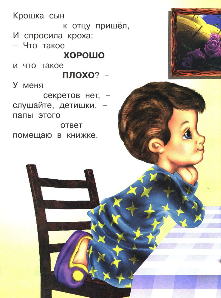 Что такое хорошо и что такое плохоВладимир Владимирович Маяковский В данный момент этот товар отсутствует в продаже. Возможно, у нас найдется аналогичный или похожий товар здесь. Серия: Стихи для малышей Для чтения взрослыми детям. |