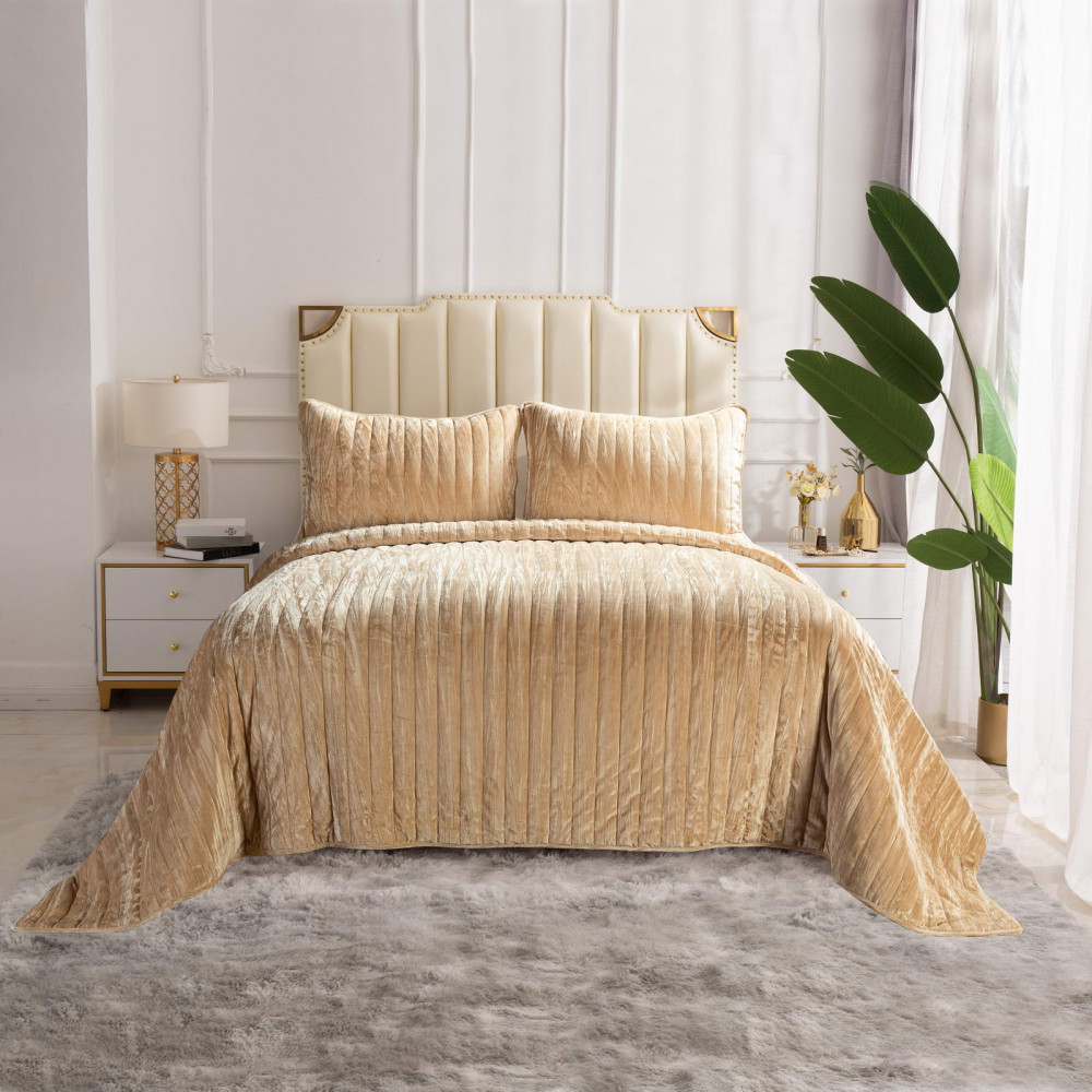 Бархатное покрывало Теона от популярного в России бренда постельного белья класса «премиум» Sofi de Marko станет главным украшением вашей спальни. Лёгкое стеганное покрывало изготовлено из 100% вискозы. Стежка придает ткани объемную фактуру и задаёт вертикальный ритм. Декоративный кант в тон изделию добавляет изящества и стабилизирует ткань. Модель представлена в нескольких цветовых вариантах: крем, мокко, зелёный, пепел розы. Объёмный вертикальный узор позволяет логически завершить интерьер, подобрав цвет и рисунок покрывала в тон акцентной стене или изголовью кровати. При выборе цвета дизайнеры советуют обращать внимание на расположение окон: в северных можно смело использовать теплые оттенки, а в южных отдавать предпочтение холодным тонам. Покрывало Теона придаст вашему интерьеру элегантную небрежность и создаст в спальне тёплую уютную атмосферу. Вся продукция текстильного дома Sofi de Marko выполнена из экологически чистых материалов и натуральных красителей, гипоаллергенна, не вызывает раздражения кожи, не теряет своего презентабельного вида и мягкости после стирки.